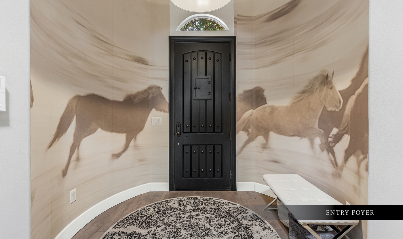 With an artistic presence that allows its spaces to live large, the edgy contemporary interior offers a wonderful showcase for eclectic furnishings and art. It features a mix of materials that are at once soothing and exciting, and a decor scheme that balances light against dark, smooth and glossy finishes with textural accents, and purely functional features with those that are decidedly whimsical in its 3,200 square feet. Step into the foyer and you can almost feel the rush of wind from a mural of galloping horses! Built originally in 2004 and recently updated, the dramatic interior flows effortlessly from a lushly-landscaped entry court to a backyard oasis that seems in every way like a portal to another dimension. A massive interior great room opens to a stunning inground pool and spa adjacent to a multi-level outdoor gathering space. A full surround of privacy wall shields various areas from view, including an imaginative four-poster lounging bed and an al fresco dining room. A fully-equipped outdoor grilling and serving area makes entertaining a breeze. There is also an outdoor shower, a private meditation court, and a playhouse for the young or young-at-heart!